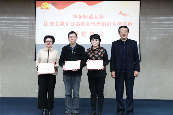 副校长汪荣明为获奖党组织颁奖 钱旭红的讲话从他对党建的个人理解切入,他认为,党建工作的本质是为党解忧、为党服务、为民奉献,正如习近平总书记在2018年新年贺词中所说,“我们伟大的发展成就由人民创造,应该由人民共享”。他表示,习近平总书记将教育放在“人民群众最关心的事情”的第一位,作为一所以教师教育为特色的综合性、研究型大学,我校党建工作在服务本校教育教学质量提升,推进中国教育事业发展的同时,应以更大的责任担当着眼更广义的“教育”。教育是党带领人民创造幸福生活的必经之路,我们的党建工作也应对人民美好生活和“两个一百年”奋斗目标的实现有所作为。他强调,党建工作要以立德树人为根本任务,努力引导教师和学生“心身境”健康发展,当每一个个体的身体和心理处于健康平衡发展的状态,工作环境、人际环境和生态环境都不断优化,党组织的辐射力就会提升;党建工作者要做到身体力行,尤其是教师党员,更应该实施“不言之教”,用行动、思考、奉献来教育人;党建工作要落到实处,在推进党的建设制度化、规范化、程序化的同时,要做到程序、制度“善执行、可操作、有成效”;党建工作要努力推动形成党组织结构、行政组织结构和学术组织结构相得益彰的关系架构,为学术发展、人才培养提供更好的体制机制保障。