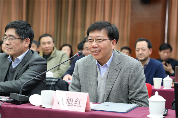 为贯彻落实党的十九大精神,学习领会习近平新时代中国特色社会主义思想,深入开展“不忘初心、牢记使命,贯彻落实党的十九大精神”学习实践活动,总结2017年我校教师思政工作和教师党建工作,更好地推进学校“双一流”建设,迎接学校第十三次党代会的胜利召开,我校于1月18日上午在闵行校区举行“不忘初心、牢记使命,以更大担当作更大贡献” 2018年党建研究年会。校党委书记童世骏,校长钱旭红,校党委副书记杨昌利、方平,副校长孙真荣、梅兵、李志斌、汪荣明,校党委委员、校纪委委员,校长助理,实体院系级单位党政正职,职能部门和直属单位负责人,基层党支部书记代表和各民主党派负责人出席会议。会议由校党委副书记、纪委书记杨昌利主持。